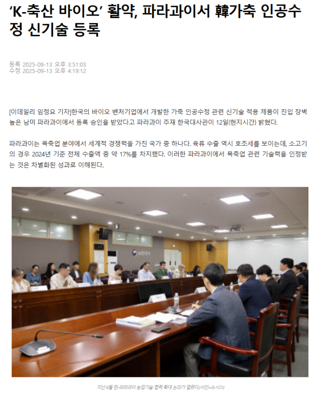 With the support of the Embassy of the Republic of Korea in Paraguay, the initiative has also drawn great attention from the government level as part of the emerging “K-Livestock Bio” movement, showcasing the growing global presence of Korea’s livestock biotechnology industry.